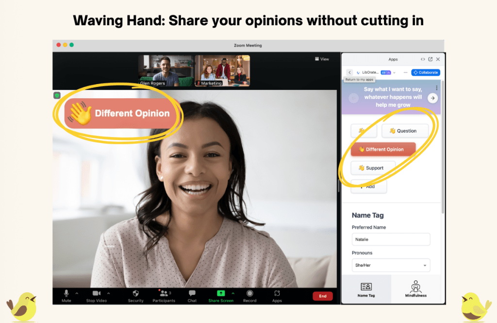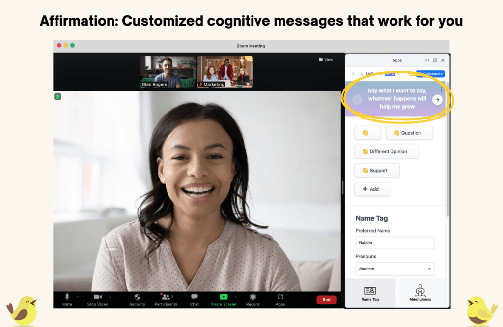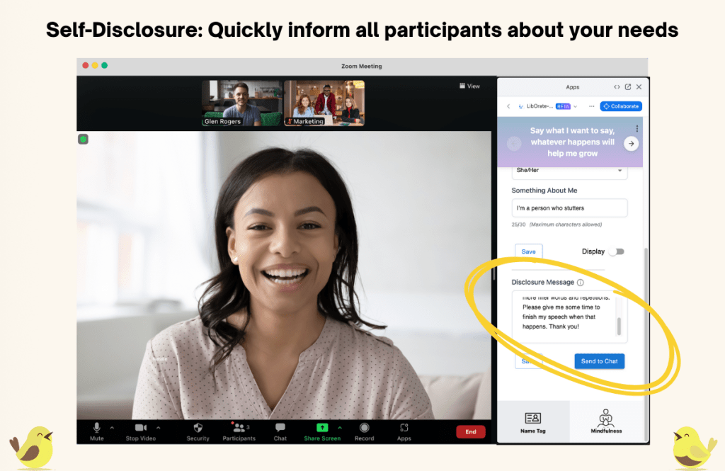 A video conferencing companion that is design for, with, and by people who stutter to empower marginalized voices and cultivate an inclusive online meeting environment.